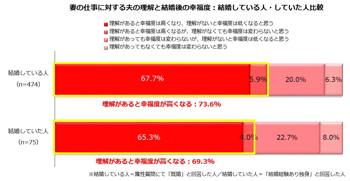 【結婚生活】結婚経験がある女性のホンネ。妻の仕事に対し夫の理解があると、結婚後の幸福度は…?「高くなる」73.0%/女性にとって仕事は、結婚の妨げになると「思う」48.6%