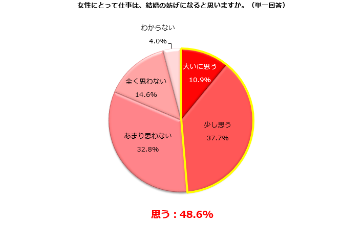 1.女性にとって仕事は、結婚の妨げになると「思う」48.6%